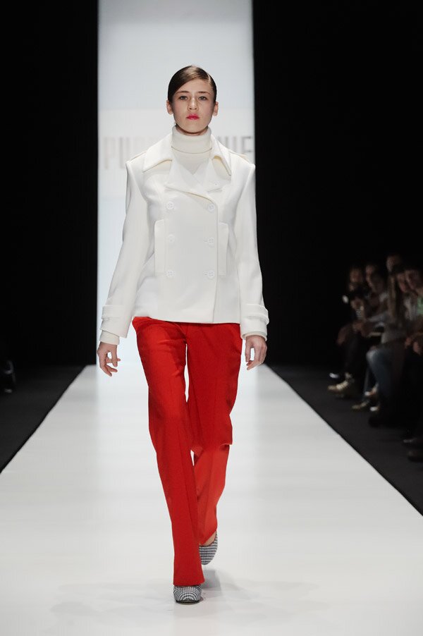 Постаравшись, по собственному признанию, соединить в своей работе современный лук с элементами внешнего вида легендарных 20-х в Париже, дизайнер марки Pure Vinnie Андрей Рыбинский, конечно же, не сумел обойтись без вопиющей наглости красного цвета или деликатного самолюбования меховых вставок в самых разных частях модели.