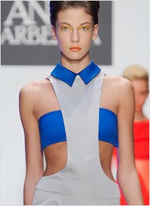 Очень взвешенный дебют от выпускницы «Лаборатории моды» Славы Зайцева в полной мере охватил дихотомический дуализм женской натуры в ее стремлении выглядеть стройнее, прямее, и оттого (почему-то именно такой ассоциативный ряд выстраивается в головах у модницы) серьезнее, не потеряв, при этом в женственности.