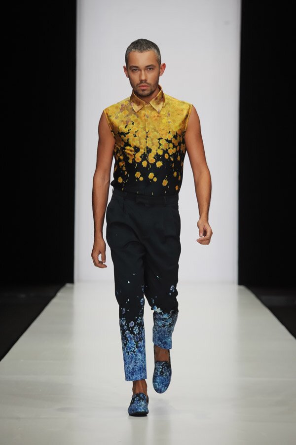 Рассыпав по рукавам и штанинам своих моделей синие или желтые цветы, которые сойдясь в одну сплошную массу, образуют ее базовые цвет, Овсиев оказался способен заключить в них какую-то невидимую энергию летнего позитива, которая возможна только в самых изысканных сочетаниях цвета и фактуры. При этом зрелость Овсиева как художника не позволила коллекции скатиться к тому дыханию пляжной простоты, которая зачастую оказывается хуже воровства.