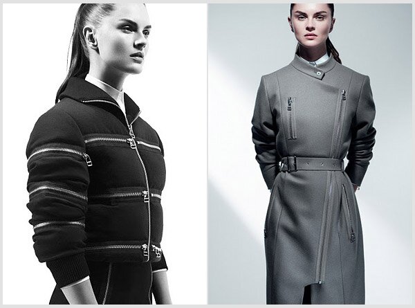 В линейке обуви представлена новая утончённая модель ультра-узких сникеров на мягкой подошве с высоким или низким верхом как для мужчин, так и женщин. Другие знаковые модели коллекции – это зимние беговые ботинки с объемным верхом для женщин и классические топсайдеры для мужчин. Холщовые аксессуары украшены молниями, повторяющими дизайнерские детали одежды.