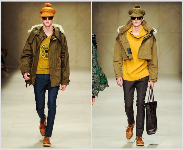 Мода развивается в оригинальном ключе. Эклектики форм дизайнерам уже не достаточно. Некоторые из них, как например, Кристофер Бейли (Christopher Bailey), креативный директор марки Burberry Prorsum, решил не только сочетать объемные пуховики свободного кроя со слимами из денима, но и сочетать минималистическую тенденцию с этническими орнаментами. Эксцентричность коллекции выражена в броской цветовой гамме, которая переливается желтым канареечным, глубоким фиолетовым и разнообразными морскими оттенками, разбавленными солнечными оранжевыми вставками. В последнее время коллекции Burberry Prorsum отличаются большим количеством цвета, текстур и некоего своенравия в трактовке почти 155-летней истории этого легендарного бренда.