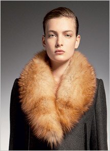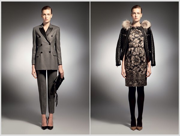 Воротник из роскошного и редкого меха красной лисы на темно-сером кашемировом пальто с прямым силуэтом пробуждает тему тайного зимнего рандеву. Брючные костюмы из шерстяной фланели с добавлением эластичных волокон и кожи – тему утонченной интриги. Пальто из мохнатой овчины и кожи идеально подходит для позднего ночного визита. А простота великолепного платья из шерстяного крепа, дополняемая кожаной отделкой ручной работы ворота и рукавов, создает образ изысканной элегантности.