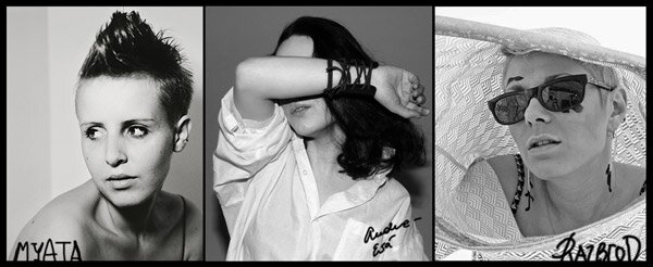 На фото: 1 — MYATA (Анастасия Ольговская), фотограф (ЦУМ, фотостудия ART SHOP 2Ё), окончила МАрХИ; 2 — Valentina Andre-Eva, художник-модельер, художник по гриму, окончила МГУДТ, University of Art’s London; 3 — RAZBROD (Наталья Разбродина), художник, окончила МГТУ им. Косыгина.